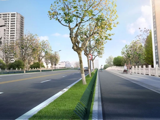 工程项目南起湖州街,北至石祥路,全长约740米,标准段宽度为24米。本工程项目建设内容主要包括局部道路基础病害修复与项目面层铣刨摊铺、无障碍环境改善以及工程附属相关标线恢复、井盖座更换、雨水口改造等。