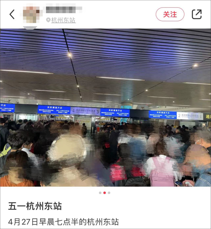 都市快报·橙柿互动消息 今天一早,不少网友发帖称,杭州东站里的人已经很多了,“五一”节前的高峰似乎已经提前到来。