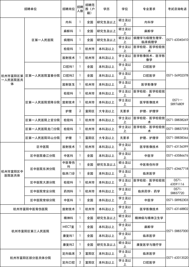 富阳区卫健系统事业单位