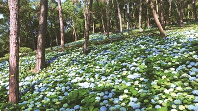 距离杭州市区半个小时车程的临平公园,继满山杜鹃花后,又美出天际——大片大片的山坡上,绣球花开成海。