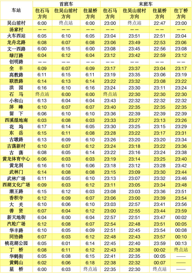 6号线首末班车时间