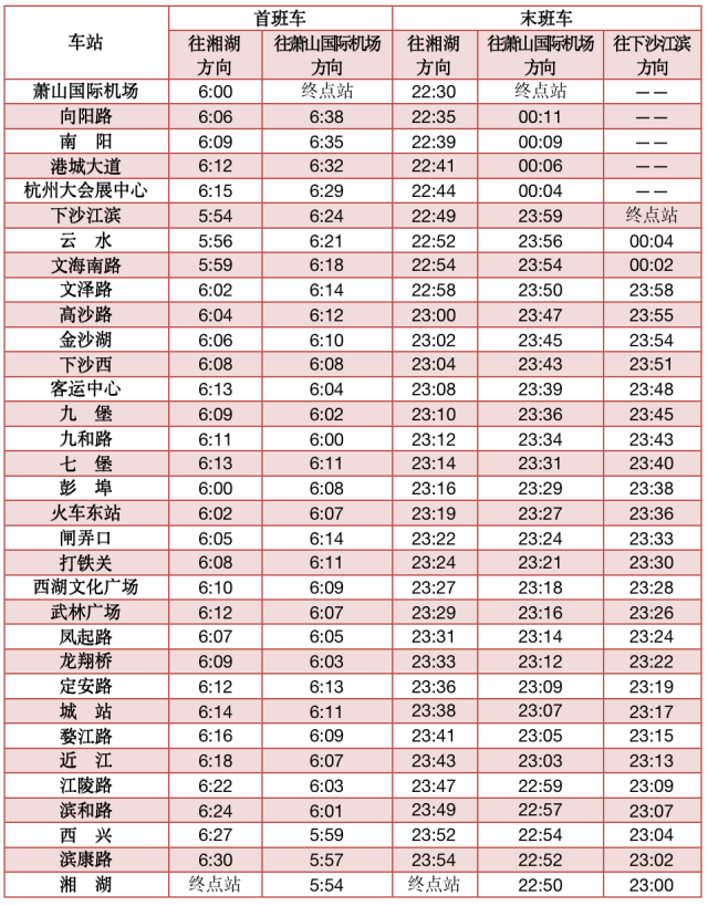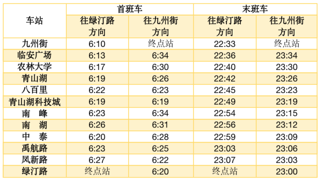19号线首末班车时间(6月1日启用)