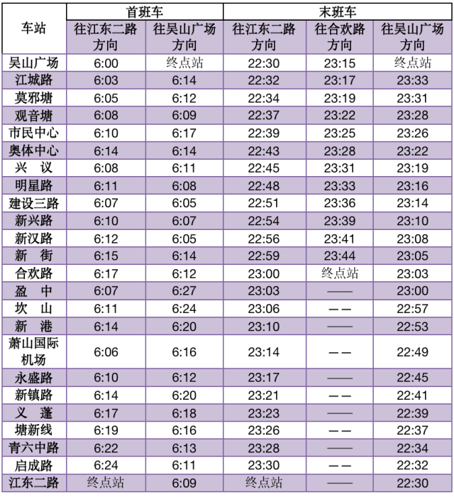 2号线首末班车时间