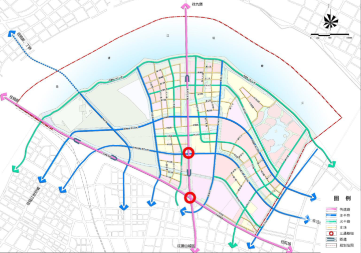 奔竞大道和平澜路将继续向东延伸至此,成为单元内的城市主干路,通过这两条路,可以将这里与钱江世纪城紧密联系起来,丰园路、池杉街和弘慧路等南北向城市主干路将衔接市北板块和萧山老城区。