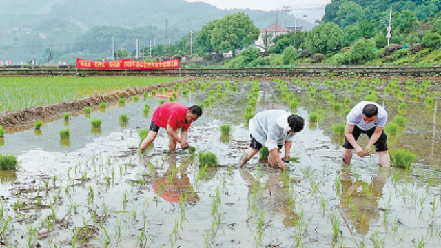 杭州日报讯 6月6日,芒种节气。在富阳区渔山乡省级粮食生产功能区内,各界代表和小学生们一起在“同心田”里插下绿油油的水稻秧苗,体验农事劳动,开启2023年“‘渔’你一起·同心共富”季。随后,这里的1700多亩水田将开始大面积机械化插秧。