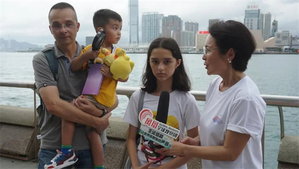 香港街头市民接受“凤凰全球观察团”采访