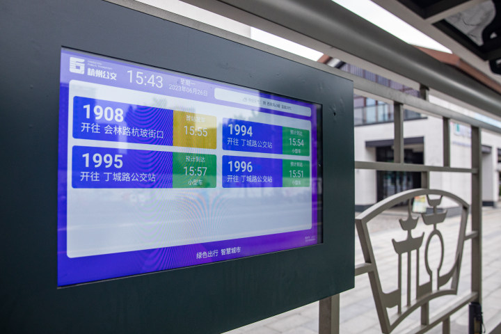 △ 丁桥小蓝巴途经公交站的电子信息屏