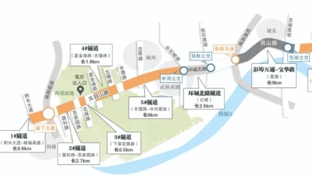 作为环北-天目提升改造工程的组成部分,这是钱塘快速路最中心的一段,是杭州市规划“四纵五横”城市快速路路网骨架系统的关键“一横”,也是亚运会重要交通保障工程。