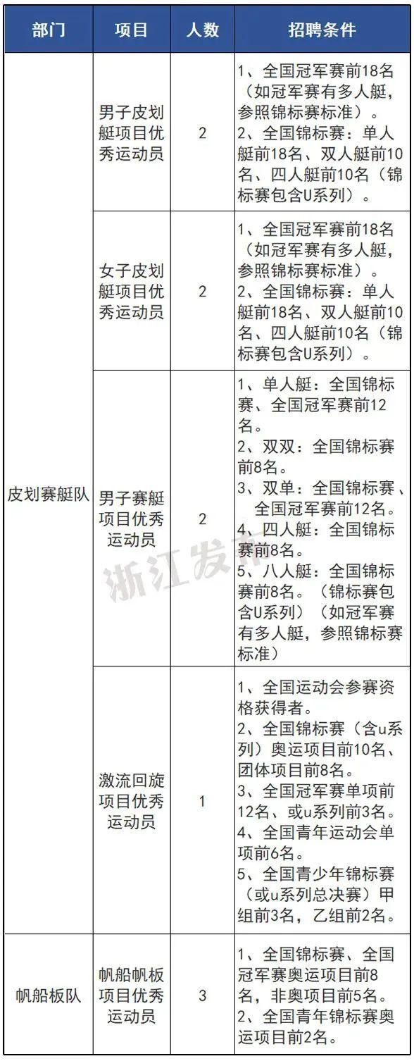 浙江省水上运动管理中心为浙江省体育局下属公益一类事业单位,预算形式为财政全额补助,机构规格为正处级。本次公开招聘优秀运动员10名,全部为专业技术(运动员)岗位。