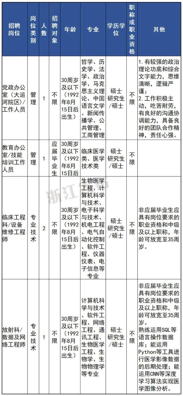 浙江大学医学院附属邵逸夫医院(浙江省邵逸夫医院)是浙江大学下属公益二类事业单位,是集医疗、教学和科研为一体的公立综合性三级甲等医院。本批次招聘需求为4个岗位5人。
