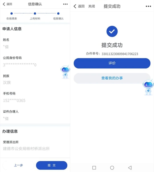 自此,在省公安厅治安管理总队部署指导和前期建德市试点基础上,实现了全市范围内“居民身份证丢失、损坏补领(领证未满两年)”网上办理。