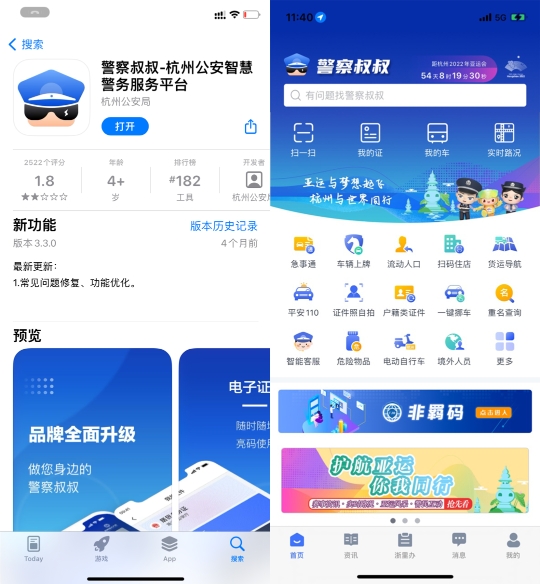 杭州市公安局在“警察叔叔”APP正式推出“居民身份证丢失、损坏补领(领证未满两年)”事项全程网办服务。