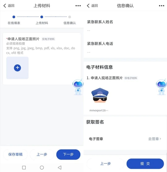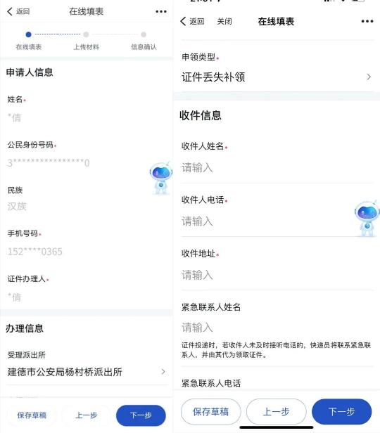 2.在线填写申请人信息、收件信息并上传现场人脸照片并进行信息确认;