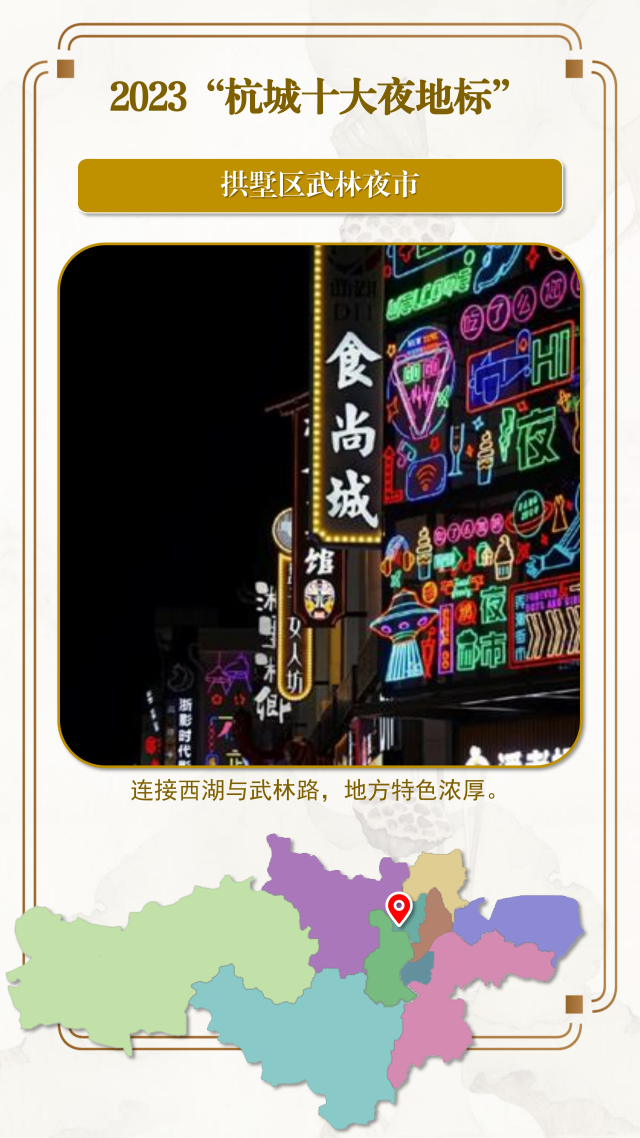 今年6月,杭州市商务局发布了《关于打造“不夜天堂 乐购杭州”的实施方案》,为繁荣夜间经济,积极促进消费升级,打造夜间消费、暑期消费热潮,特别发布2023“杭城十大夜地标”。