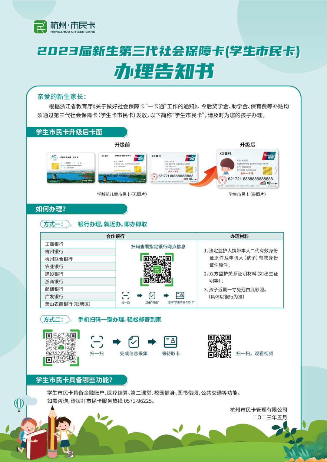 暑假进入后半段,开学的日子不远了!杭州的家长们,尤其是小学一年级新生家长,这两天记得检查下孩子的学生社保卡(市民卡),如果还没升级换新,请抓紧办理。如何办理升级?升级后的卡有哪些变化?一起来了解。