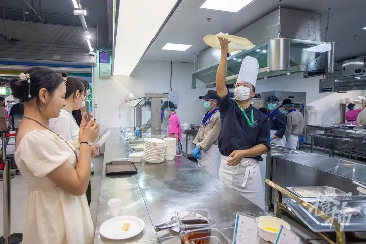 亚运村运行管理中心餐饮服务副主任胡传刚告诉我们,餐厅包含热餐区、冷餐和常温餐区、饮料区、明档区,其中热餐区提供菜系主要为中餐风味、东亚风味、南亚及次大陆风味、阿拉伯及中东风味、欧陆风味,明档区提供现煎牛排等食物。可以尽量满足大家的不同口味。