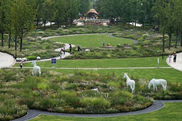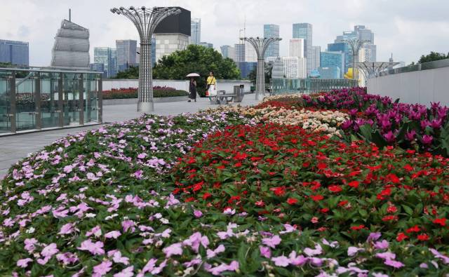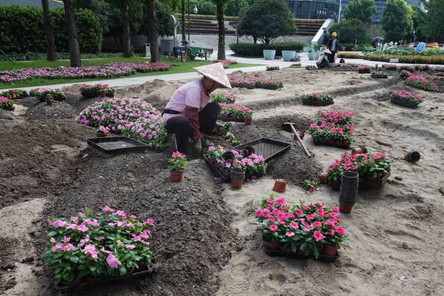 9月4日,在钱江世纪公园内,园林工人正忙着栽种花草、布置景观,一座为市民和游客打造的杭州自然花园新地标——亚洲花卉主题展园即将在这里缤纷亮相。