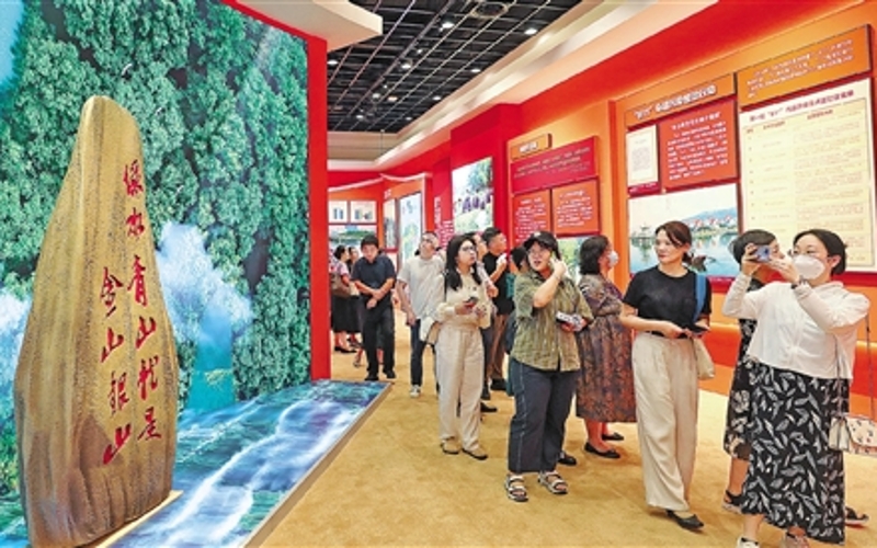 9月8日,大道之行——“八八战略”实施20周年大型主题展览在浙江展览馆开幕。图为观众参观会流动的“绿水青山”。记者 董旭明 林云龙 摄