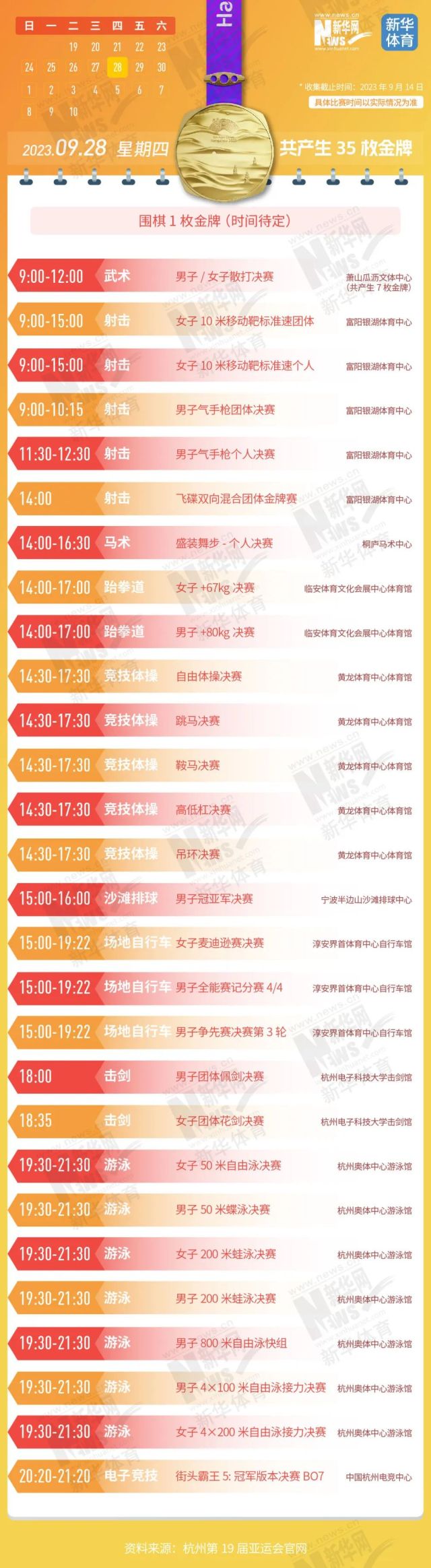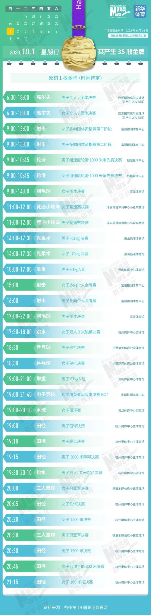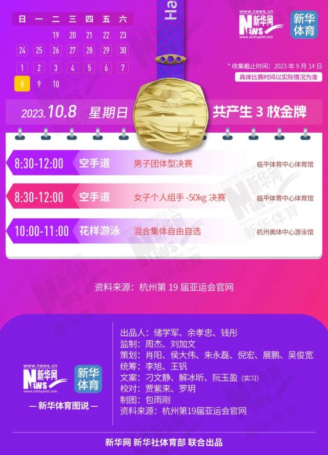 收藏!亚运会481枚金牌产生时间 给你列好了