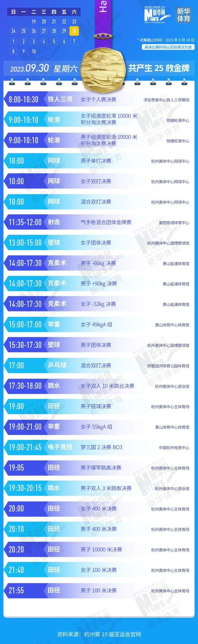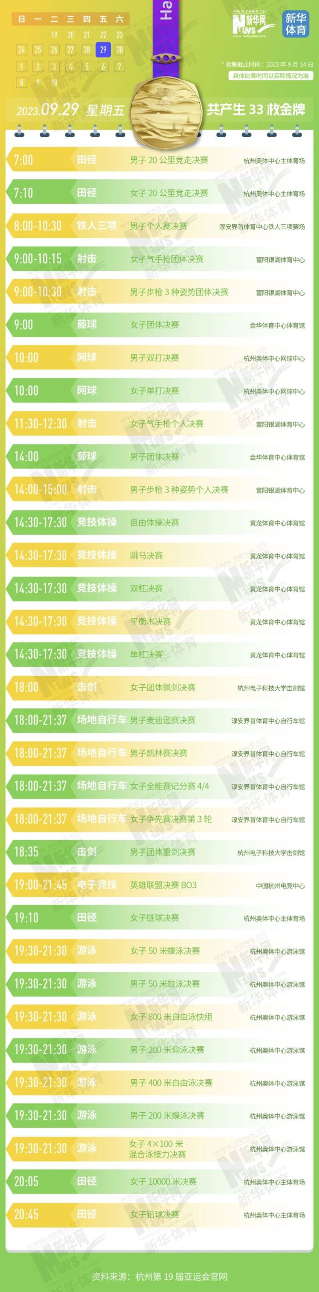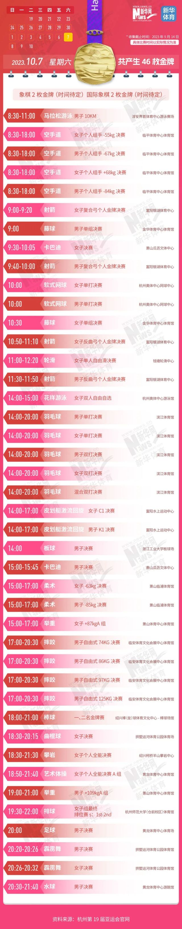 收藏!亚运会481枚金牌产生时间 给你列好了