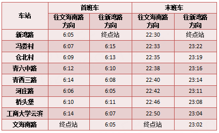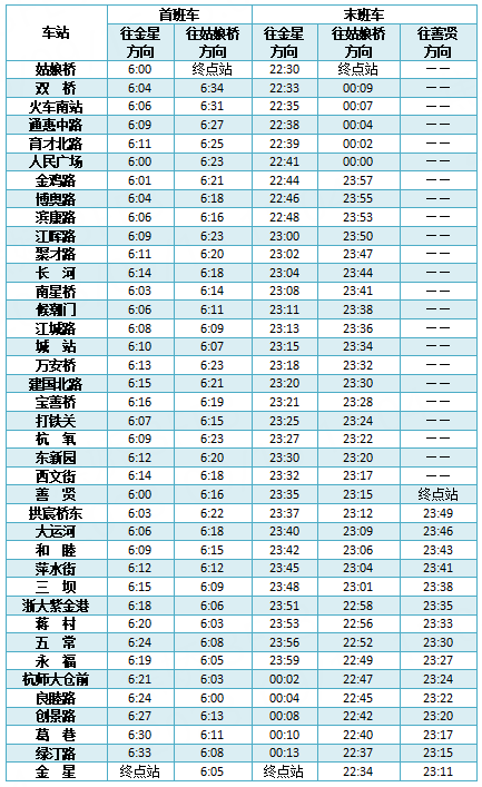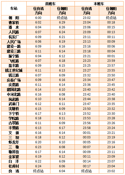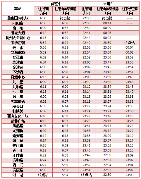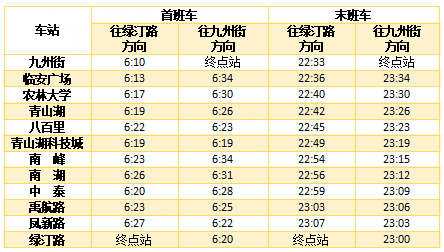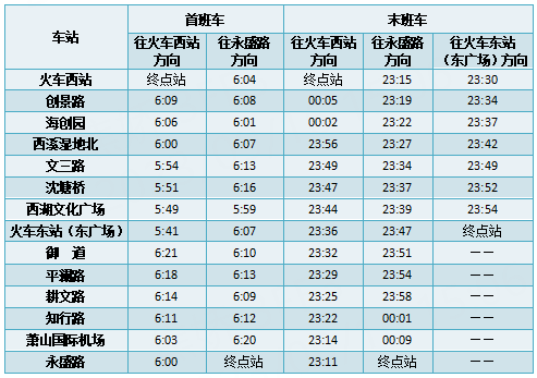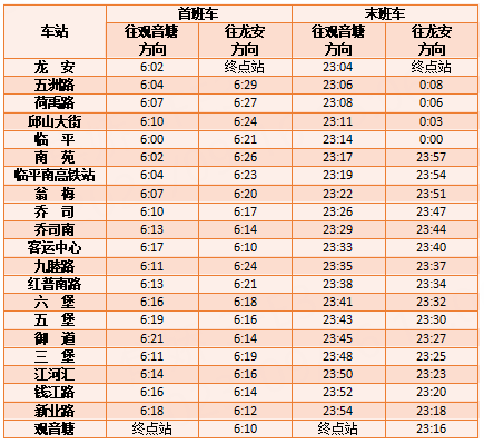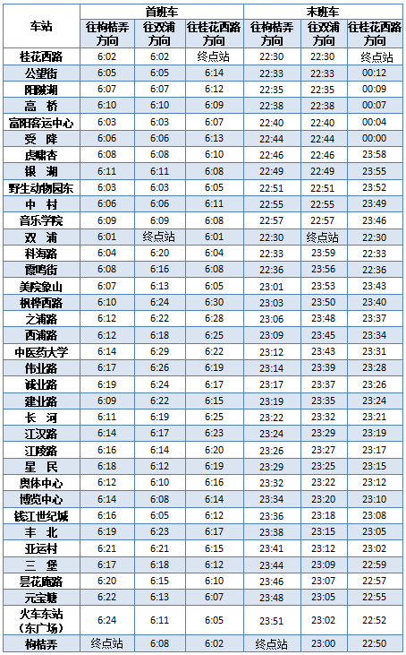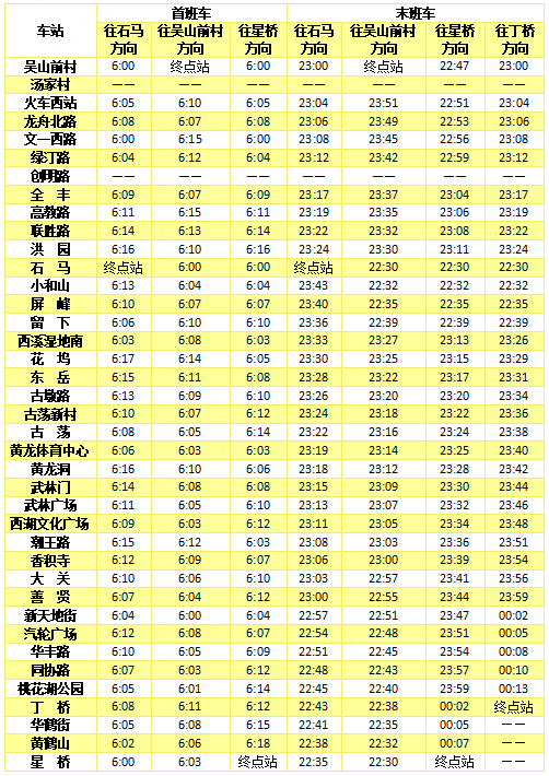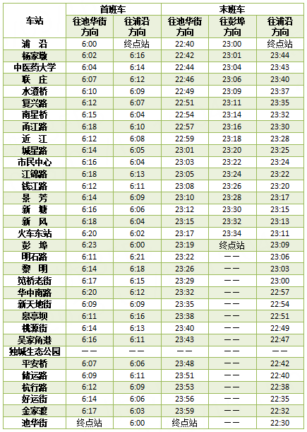 首末班车时间