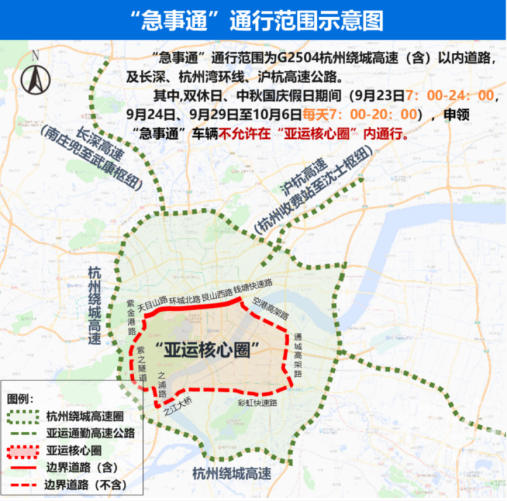 2023年9月18日至10月9日,每日7:00至20:00(其中9月23日和10月8日亚运会开、闭幕式当天延长至24:00),在G2504杭州绕城高速公路(含)以内区域所有道路,实施以下管理措施:浙A号牌小型、微型载客汽车按机动车号牌最后一位阿拉伯数字,实行“单日单号、双日双号”通行;禁止非浙A号牌小型、微型载客汽车通行。上述车辆包含新能源号牌、临时号牌车辆。