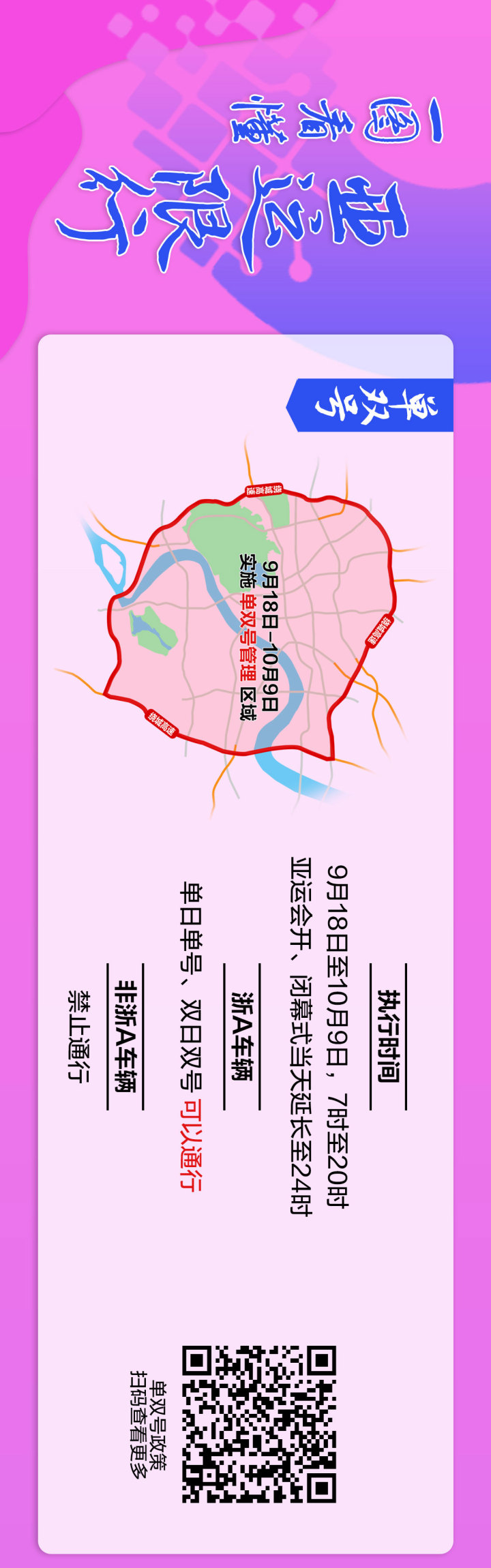 9月18日起,杭州绕城高速公路(含)以内区域所有道路,每日7:00至20:00实行单双号管理。