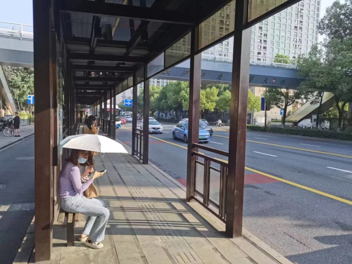 在杭州市中医院站台,记者看到有工作人员值守。司机停站时问了一句“在干啥?”工作人员回答,分班头,今天要观察客流情况。8点一刻,车子开到体育场路上,车流稍多。