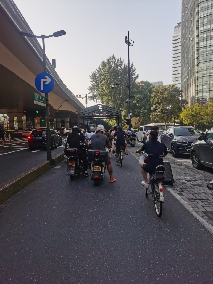 今天单双号限行,路面上的机动车明显减少,这让小电驴提速不少。