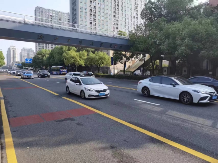8点05分,车子开到了保俶路上。天目山路和体育场路中间这一段,往常早高峰是比较拥堵的,今天车子也少了不少。