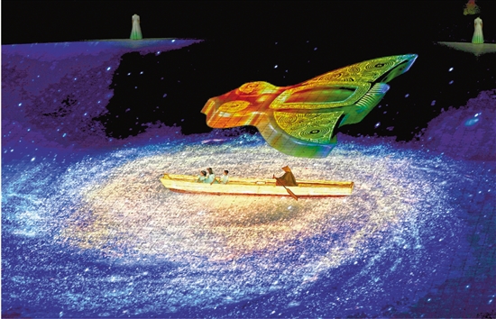 火炬熄灭后,独木舟漂过一片星河。 本报记者 董旭明 倪雁强 摄