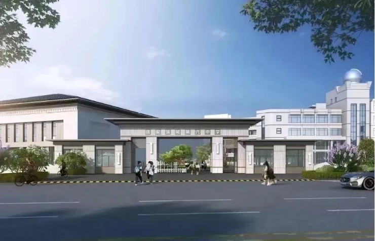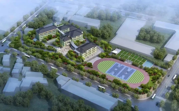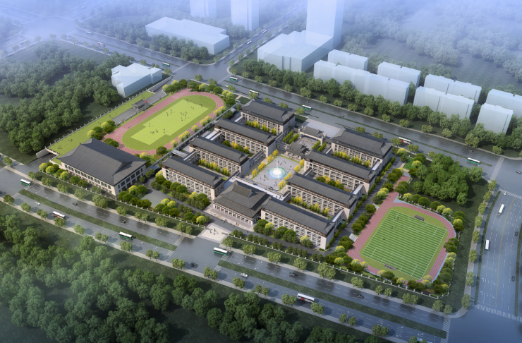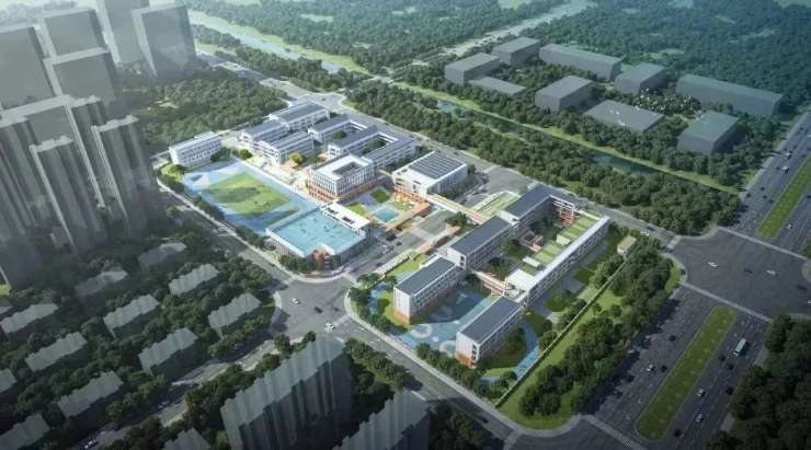 项目位于青西四路与规划道路西北角,总建筑面积约8万平方米,办校规模为54个班,将新建36个小学班级、18个初中班级。项目建设内容包含小学及配套用房、行政用房、生活服务用房、体育活动场馆、地下车库、300米环形跑道以及室外标准篮(排)球场等。