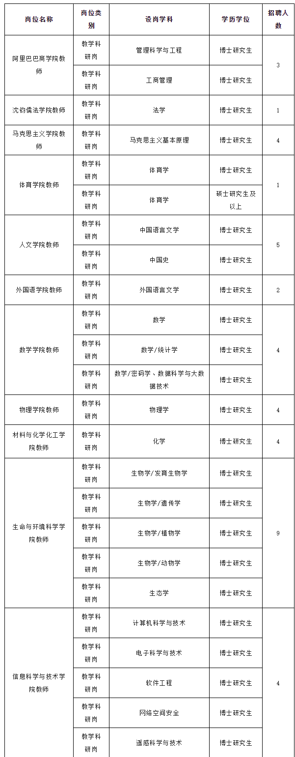 因工作需要,杭州师范大学决定面向社会公开招聘高层次专业技术人才67人。