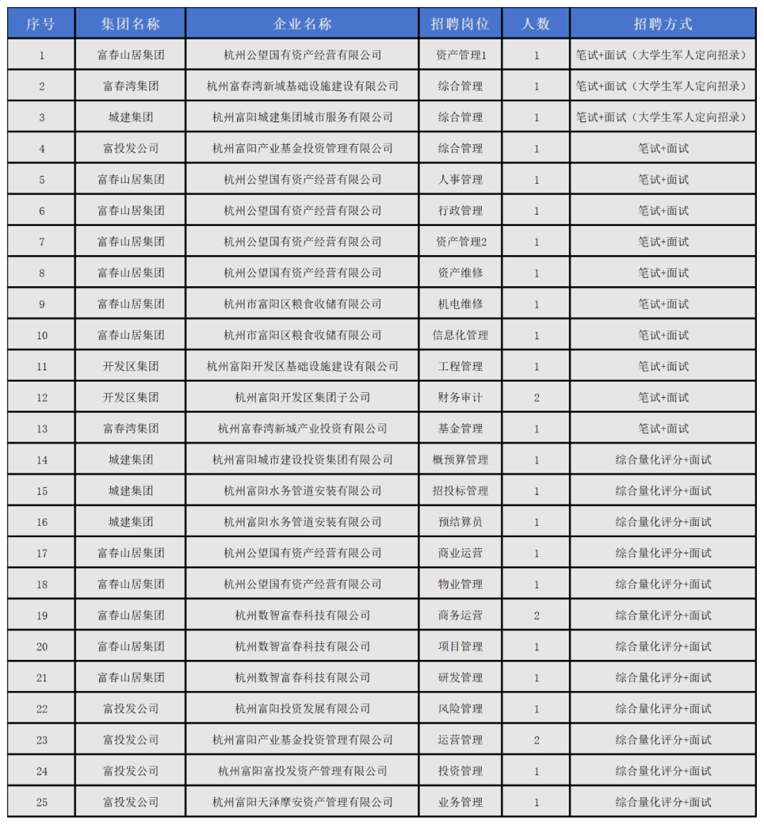 根据区属国有企业人员管理办法,富阳区拟面向社会公开招聘国企工作人员,现公告如下: