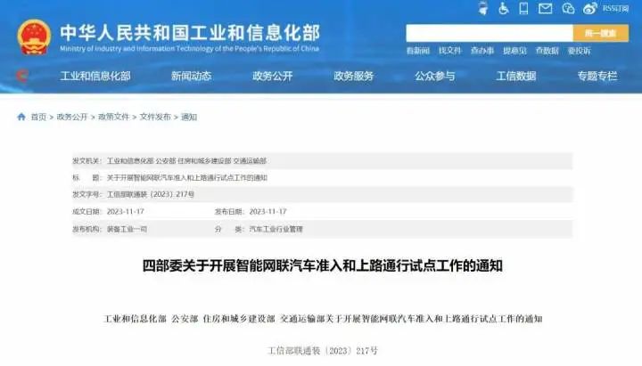 昨天(11月17日),工业和信息化部、公安部、住房和城乡建设部、交通运输部联合发布《关于开展智能网联汽车准入和上路通行试点工作的通知》(以下简称通知),这意味着我国智能网联汽车产业发展迈出关键一步。