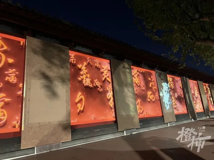 德寿红墙灯光秀首秀,其实是一个创新式的“让文物活起来——我和博物馆的故事成果展”,展览地点为南宋德寿宫遗址博物馆西出口的红墙处。