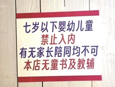 前几天在网上冲浪时,刷到一位网友发帖说自己带孩子去逛中山北路上一家书店,遭到店主拒绝,表示7岁以下的小朋友禁止入内,家长陪同也不可以。