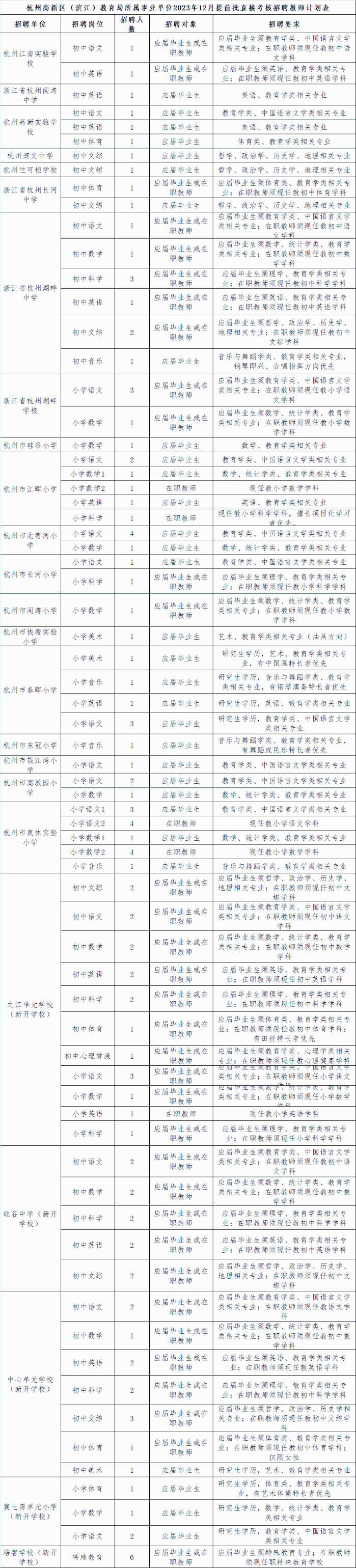 杭州高新区(滨江)教育局所属杭州江南实验学校等24家财政补助事业单位,因工作需要,面向2024届应届毕业生和在职教师,直接考核招聘事业编制教师113名。