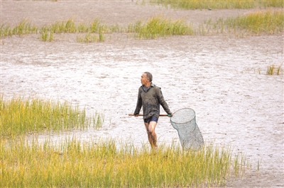 看了一下,有“赶潮人”抓到十多斤的大鱼,或是好几斤的甲鱼。也有许多人则提着空网兜上了岸。