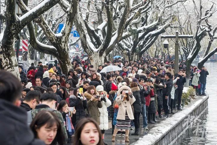 西湖边、断桥上,人山人海,