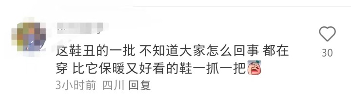 不过上班和通勤穿雪地靴这事,也不是人人都来要链接,也有一部分网友表示:“太丑了,完全无法接受”、“一双正版UGG价格高,不好养护,关键是我觉得不好看”、“十年前就流行过了,又土又难看,这届年轻人没有在乎的人了吗?”