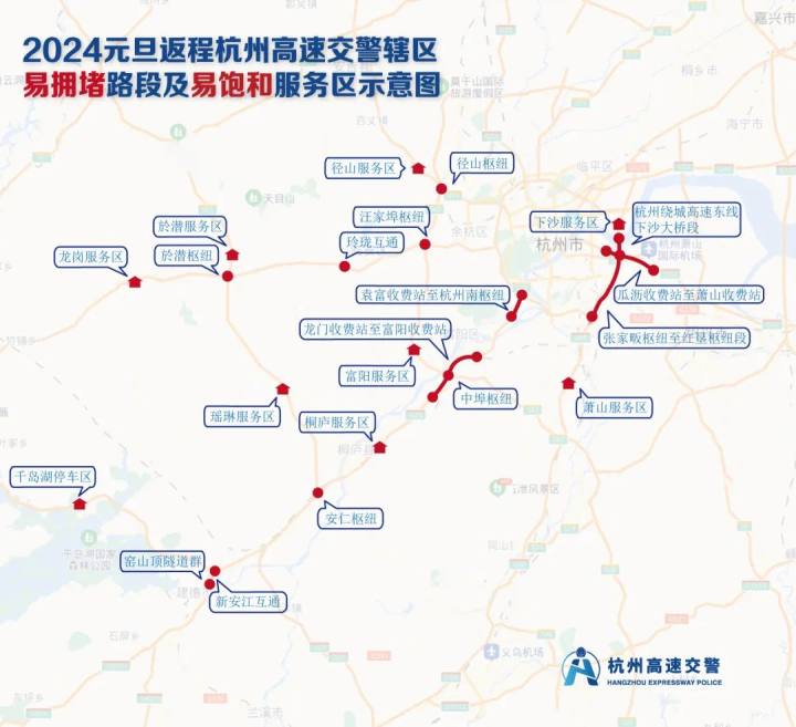 4、G25杭新景高速杭向因大流量2363K后方排队缓行3公里,2371K后方排队缓行3公里,2378K后方排队缓行2公里。管制措施:杭向杨村桥、梅城、大洋、富春江、桐庐、凤川、深奥关闭。
