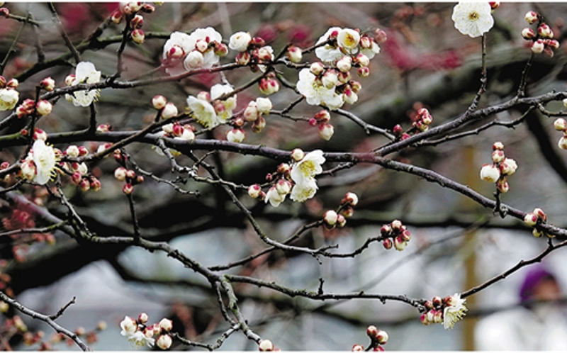 近日,孤山景区的梅园里,已有红梅、白梅零星绽放,俏缀枝头,吸引不少市民游客和摄影爱好者前来寻梅打卡。时下西湖边的蜡梅尚处盛花期,“暗香浮动”可持续到1月底,而梅花的整体花期一般从1月下旬持续到3月上旬。预计今年春节至元宵节期间,将是赏梅的最佳时段。