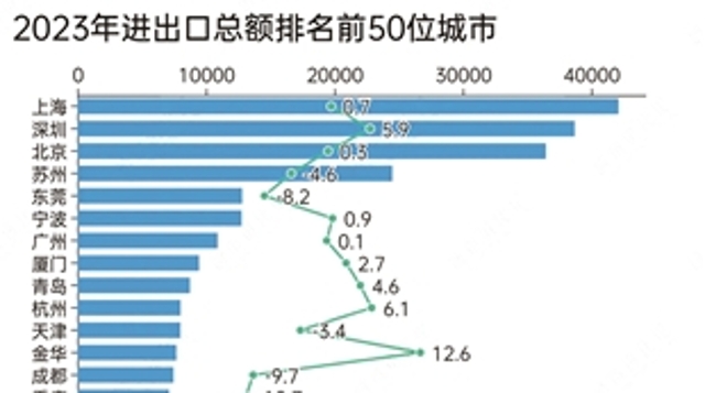先来看这份榜单。总的来看,在全国进出口总值同比增长0.2%的情况下,多座城市外贸处于调整、转型阶段。