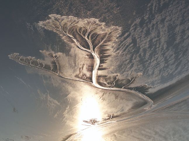 1月24日清晨7点,钱塘江海宁尖山段结冰的潮汐树。