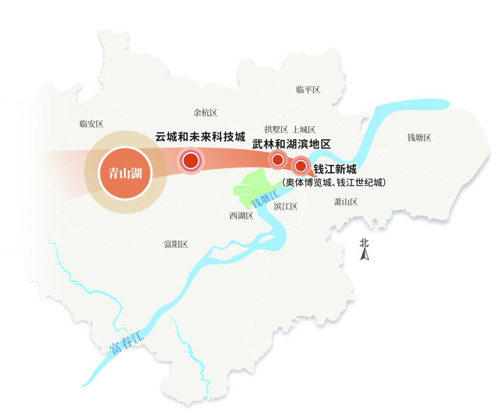 紧挨着未来科技城的青山湖科技城,在协同、承接未来科技城产业溢出的同时,错位发展,找准了城西科创大走廊制造业重点承接平台的定位,主攻高端装备、集成电路、生命健康三大主导产业。