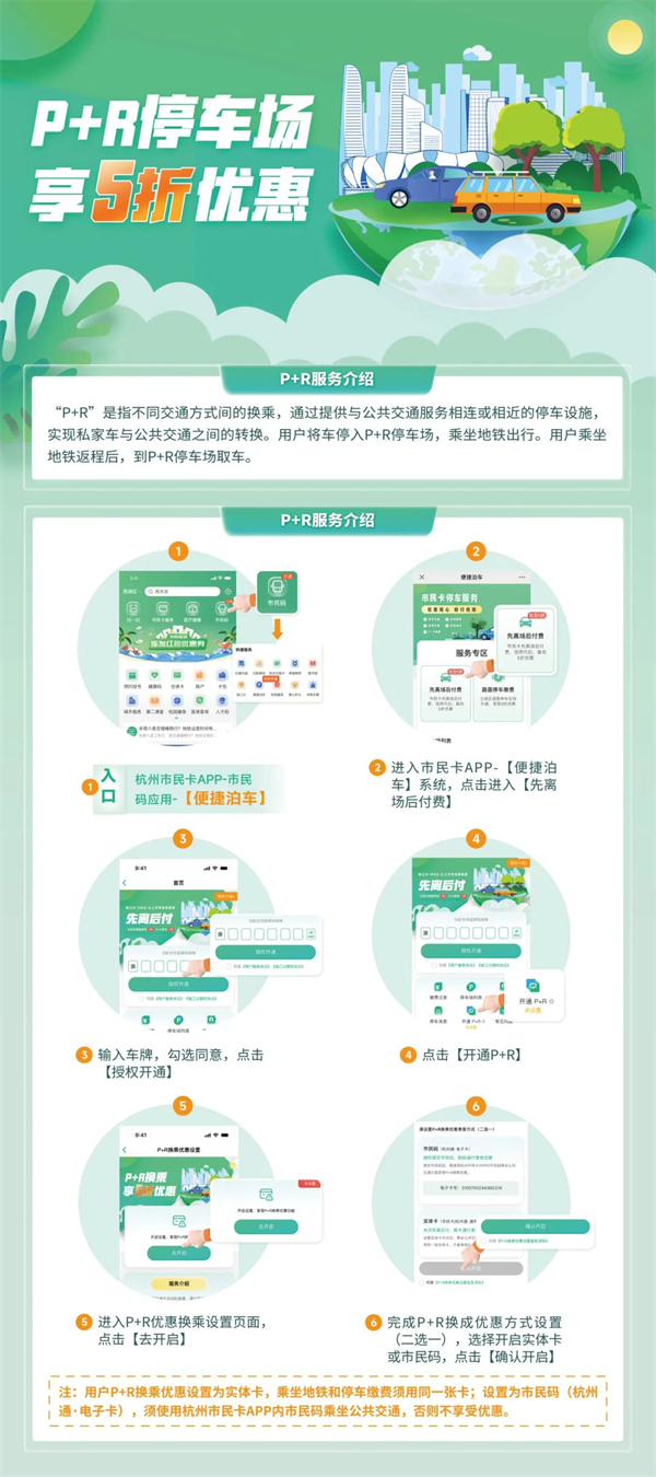 需要注意的是,完成设置后,用户须使用杭州市民卡APP内“市民码”乘坐公共交通,才可以享受P+R换乘优惠。