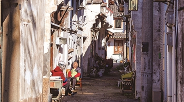 走在义桥大街,我特别喜欢钻它的小巷。它们宽窄不一,窄的只有几十厘米,两个人迎面走来,都得侧身才能过。有的小巷有古老的石板路,两旁是古旧的瓦房,阳光斜射而下。偶有老人坐在门口,可以看到老树在微风中轻轻摇曳,仿佛诉说沧桑的故事。