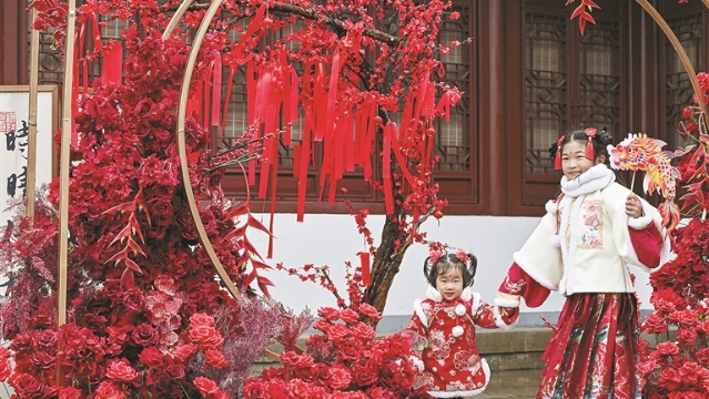 除了好看的花卉布置,丰富的文化活动也是本次花展的“主打”——在阅礼堂古戏台,每天都会有热闹精彩的节目,如民俗表演、宋韵点茶、书法艺术等;正月十五还将上演令人期待的NPC巡游互动,四大花神、卖花郎等将邀请市民游客一起“闹元宵”;在依光堂,有用千名非遗传承人和工艺美术大师作品搭建而成的“锦盒艺术墙”,大家在打卡拍照的同时还可以抽取非遗幸运盲盒。