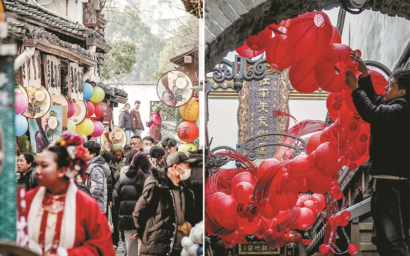 在文旅深度融合的杭州,年味也有着不同的体现:有新年音乐会,有传统手工艺展示,有新春市集,更有被灯笼、福字、民俗活动等衬托得喜气洋洋的节日氛围。